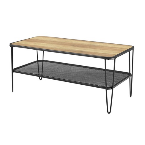 Industrial Hairpin Leg Coffee Table With Metal Mesh Shelf Rustic
