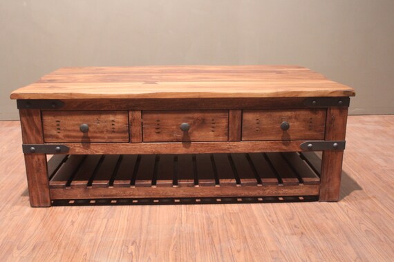Outstanding Quality Rustic Solid Wood Coffee Table With Six Etsy