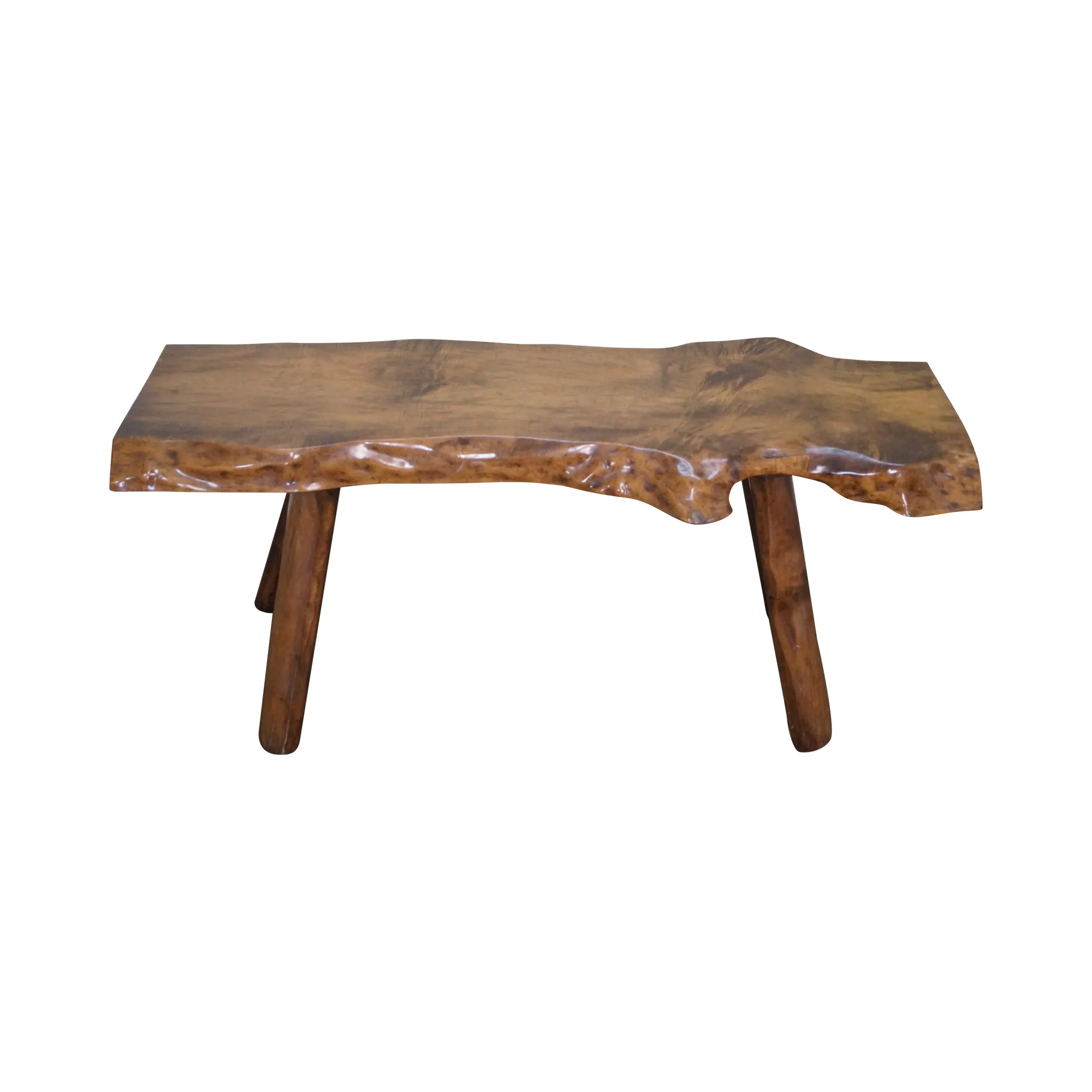 Vintage Rustic Free Edge Coffee Table Natural Wood Slab For Sale