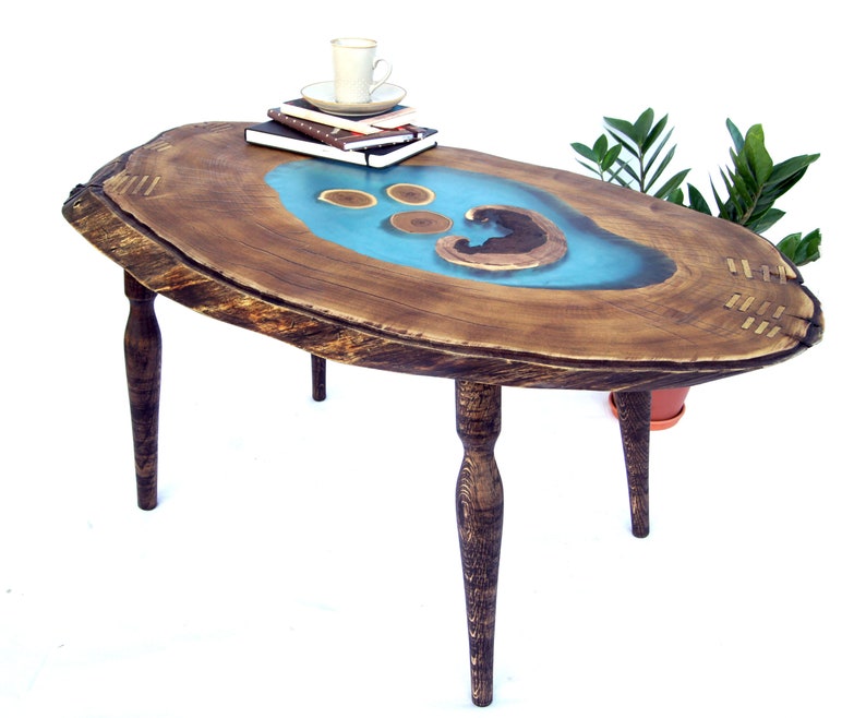 Live Edge Wood Slab Coffee Table Resin Table Rustic Cabin Etsy