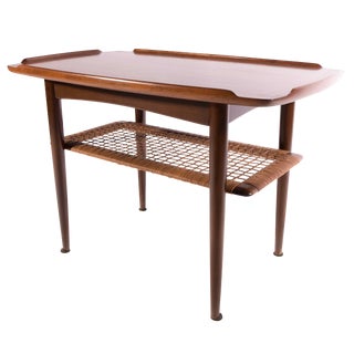 Midcentury Teak Coffee Table With Cane Shelf By Selig Poul Jensen