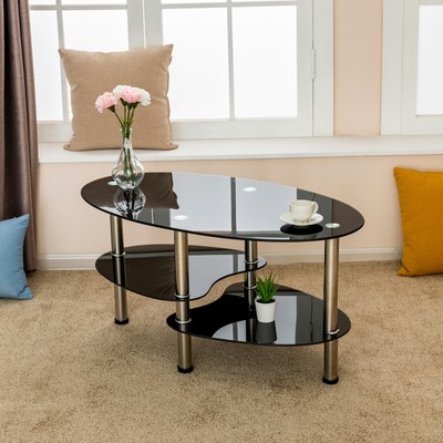 Oval Tempered Glass Side Coffee Table Chrome Bars W Shelf Living