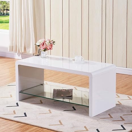 Homcom 2 Tier Simple Modern Coffee Table Storage Shelf Living Room