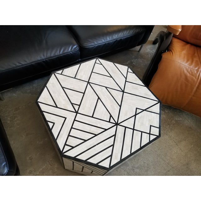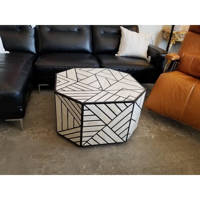 Modern West Elm Octoganol Coffee Table In Black White Bone Inlay