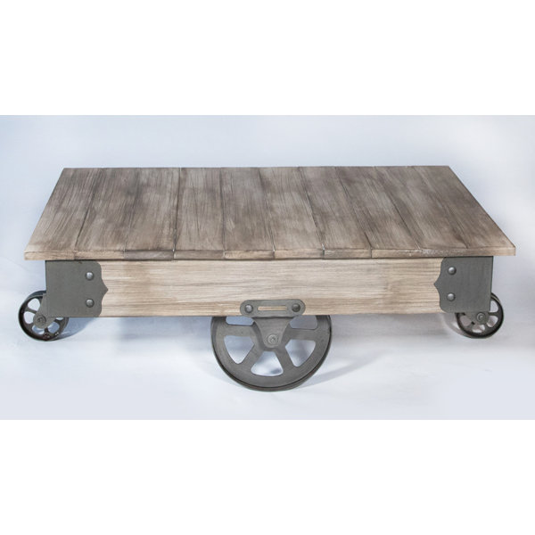 Industrial Wood Coffee Table With Wheels Denio S Furniture