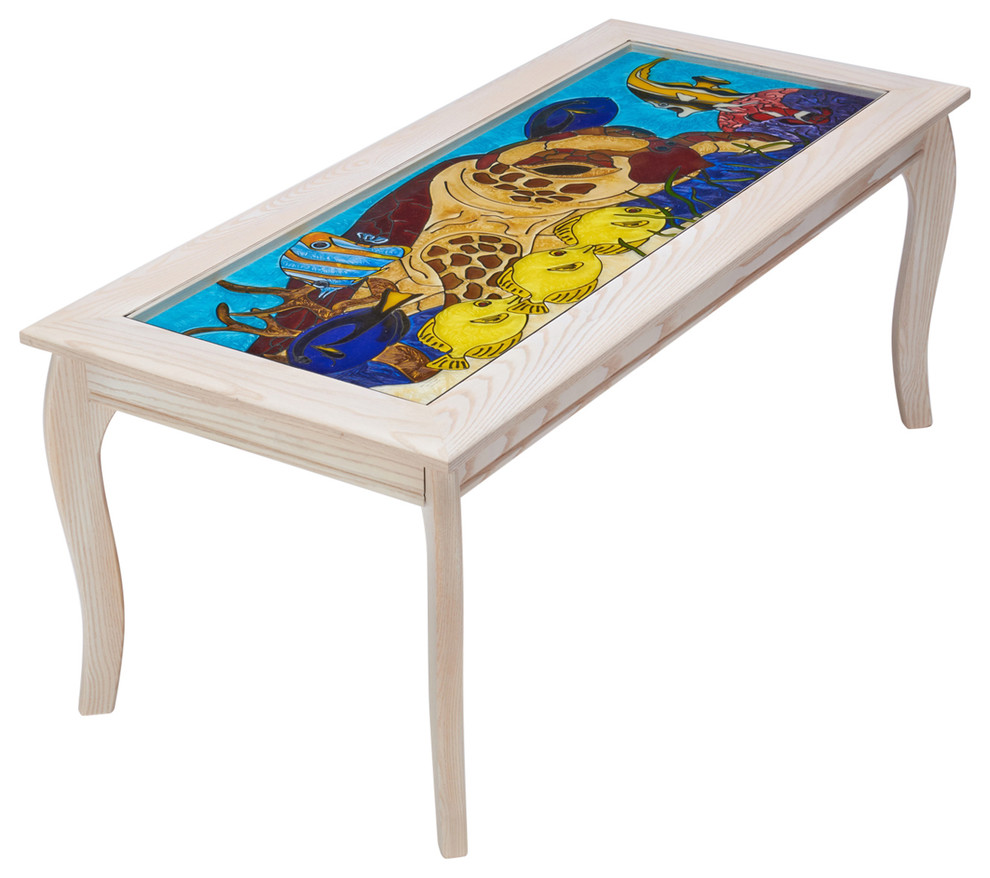 Beach Sunroom White Glass Top Coffee Table Beach Style Coffee