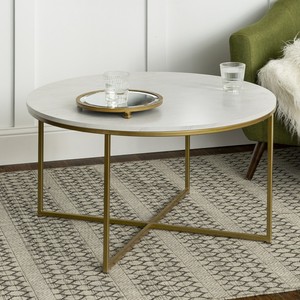 Walker Edison 32 Inch Round Coffee Table In White Faux Marble With