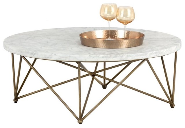 Shop Rustic Round Metal Wrap Coffee Table White Faux Marble Gold