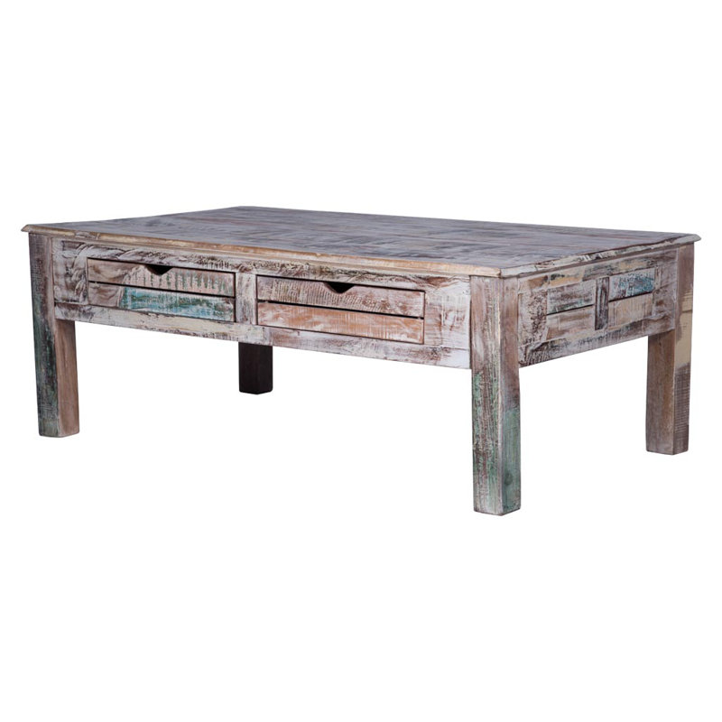 Whitewashed Reclaimed Hand Finished Coffee Table With 4 Drawers
