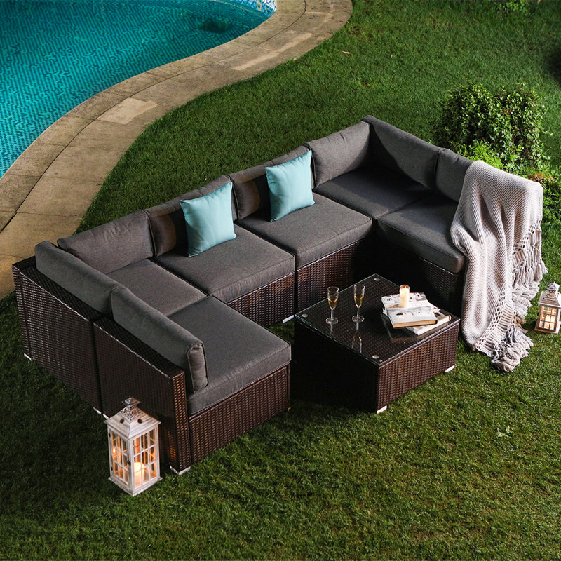 Sunbrella Addison 7 Piece Wicker Patio Sofa Sectional Meldecco