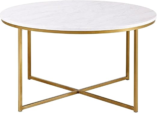 Amazon Com Coffee Table Marble Top Round Metal Base Laminate Top