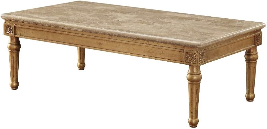 Sale Acme Furniture Bologna Marble Top Wood Leg Coffee Table In
