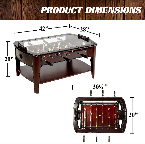 Sports Foosball Soccer Game Wooden Coffee Table Glass Top Dark