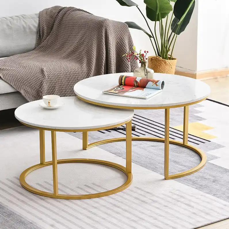Csq Metal Coffee Table Marble Pattern Golden Bracket Wrought Iron