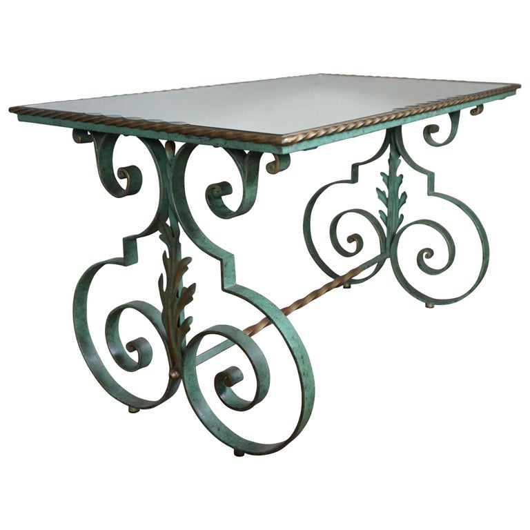 French Art Deco Wrought Iron And Marble Coffee Table 1940s For
