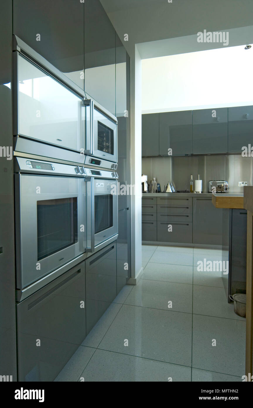 Modern Kitchen With Grey Units Integrated Appliances And Tiled