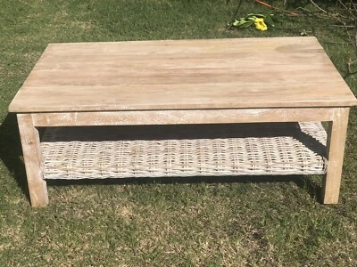 Whitewash Timber Top And Rattan Coffee Table Coffee Tables