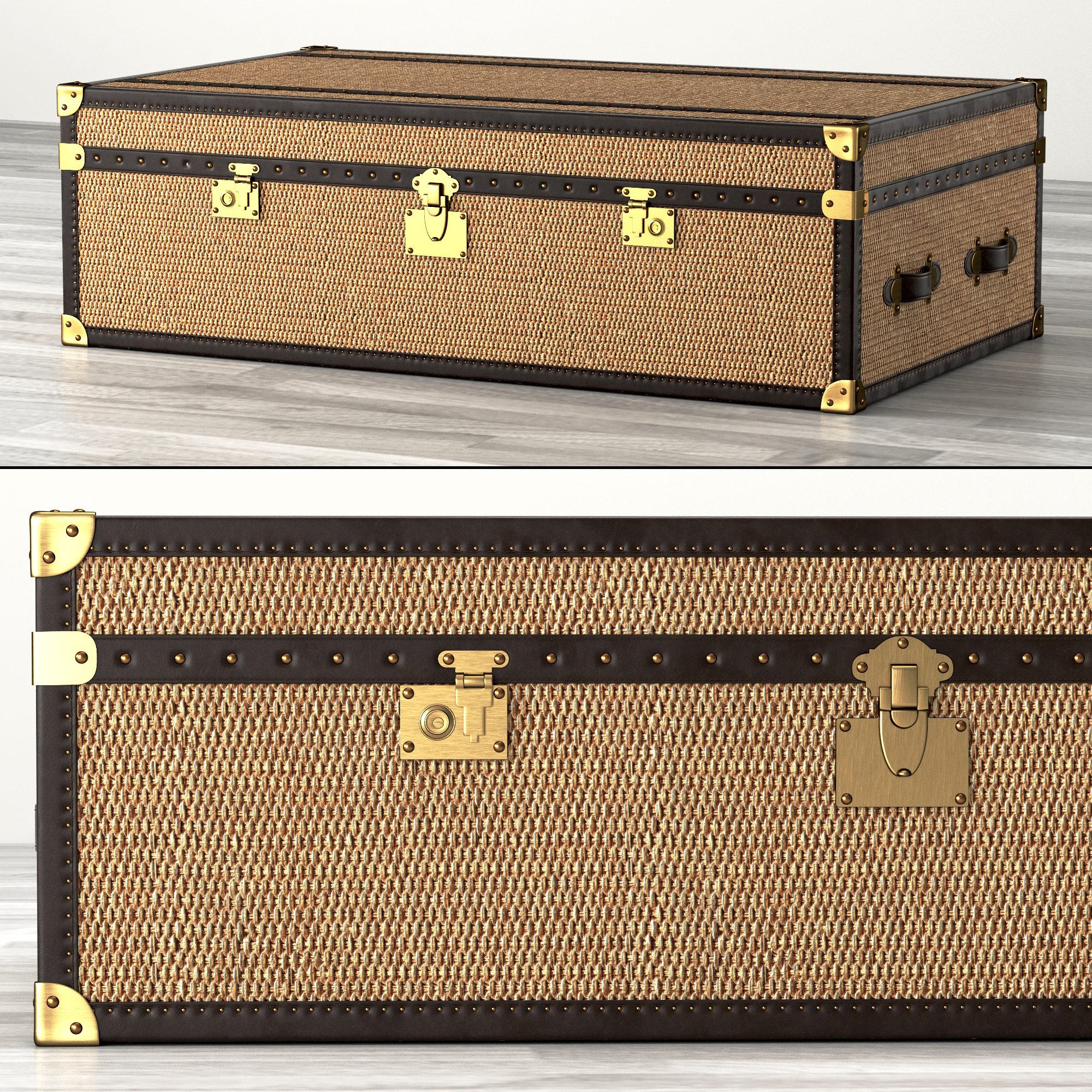 Rattan Trunk Coffee Table Antique Grey Cane Trunk With Straps
