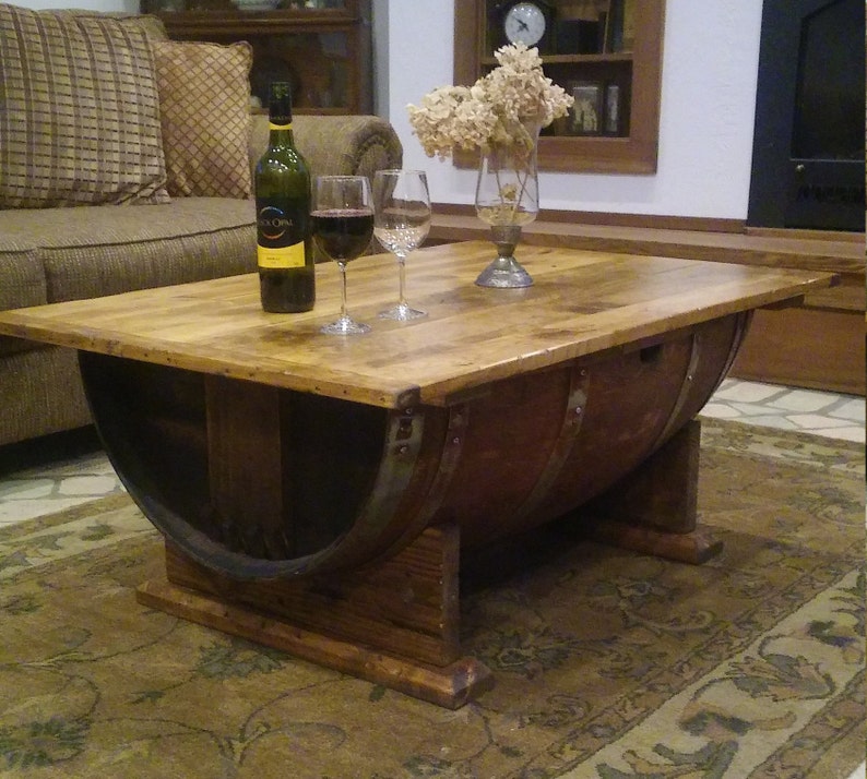 This Wood Coffee Table Made From A Wine Barrel Is A Nice Etsy