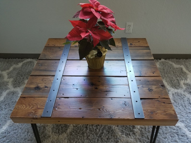 Authentic Reclaimed Wood Coffee Table With Rebar Hairpin Legs Etsy
