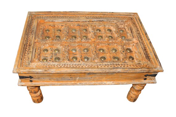 Orange Rustic Coffee Table Old Jharokha Solid Wood Rectangle Etsy