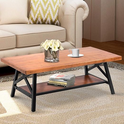 Amazon Com Wood Coffee Table Rustic Style Easy Assembly Wood And