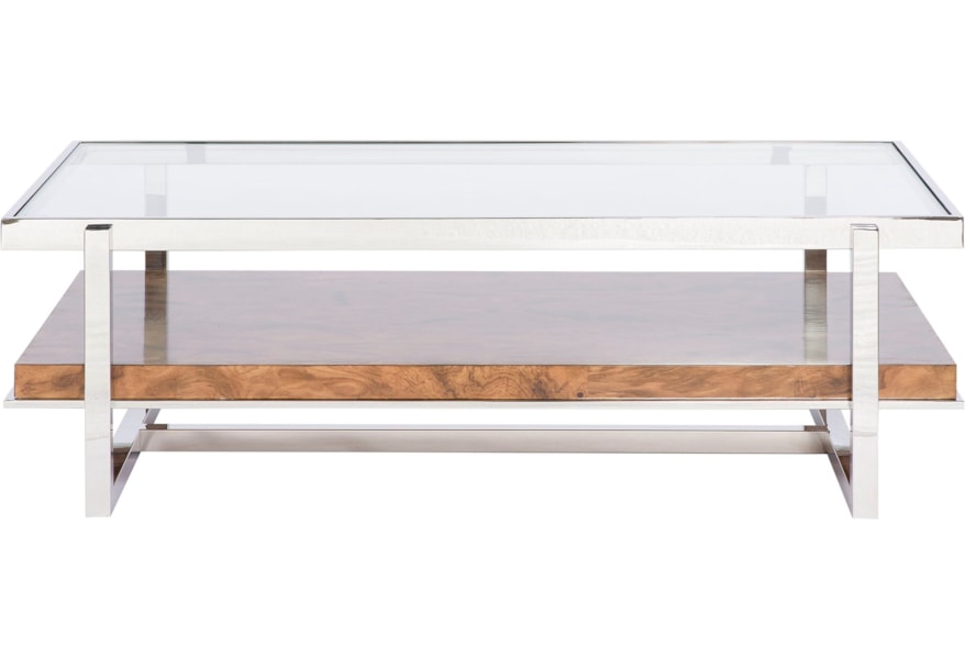 Jofran Compass Glass Rectangle Coffee Table In Chrome And Wood