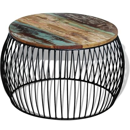 Vidaxl Coffee Table Desk Stand Round Solid Reclaimed Recycled Wood