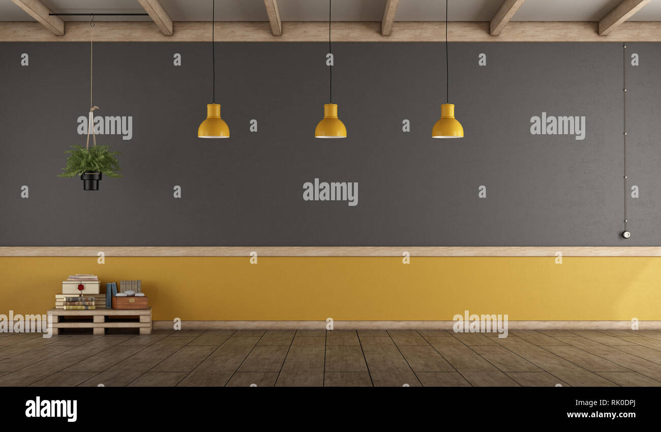 Gray And Yellow Empty Room In Retro Style With Pallet Coffee Table
