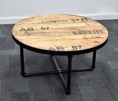 Industrial Round Coffee Table Living Room Solid Timber Retro