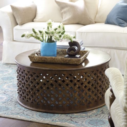 Round Hand Carved Drum Coffee Table Living Spaces