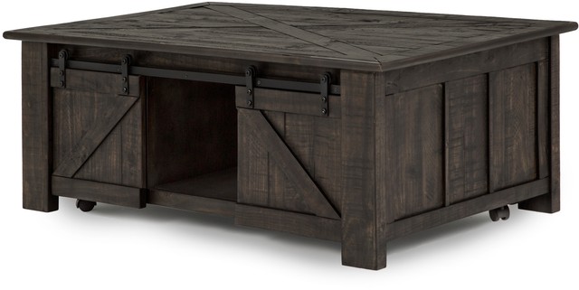 Rustic Sliding Door Coffee Table W Lift Top Casters Weathered