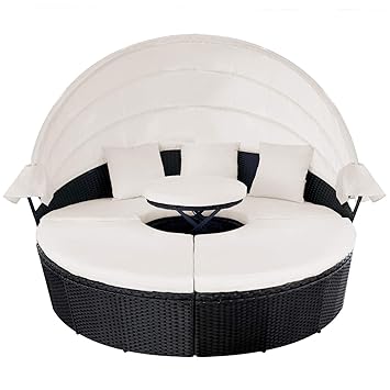 M W Patio Furniture Round Outdoor Daybed With Retractable Canopy
