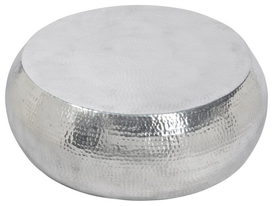31 5 Dia Low Coffee Table Hammered Aluminum Shiny Silver Finish
