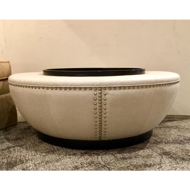 Kravet Modern Silver Micro Pebble Pattern Orbit Hassock Ottoman