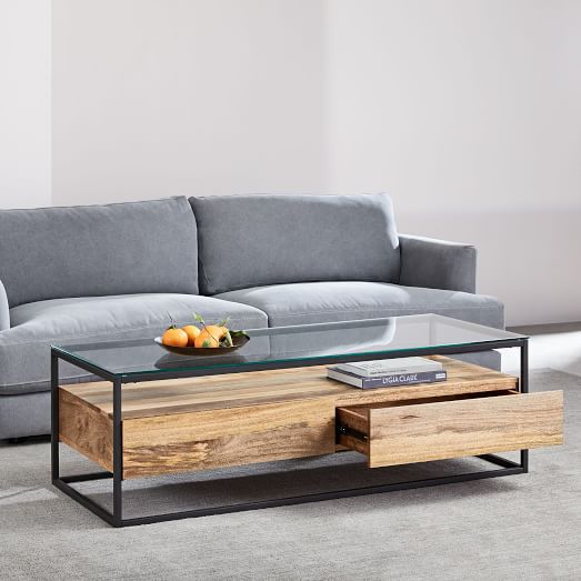 West Elm Box Frame Coffee Table W Glass Top Aptdeco