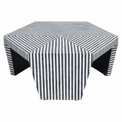 Handmade Bone Inlay Zebra Line Stripe Octagon Coffee Table Centre