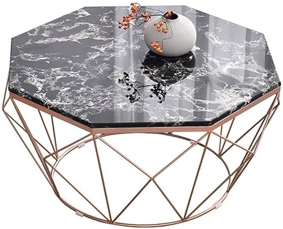 Marble Coffee Table Octagon 2 Tier Side Table Storage Shelf Metal