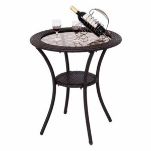 Resin Wicker Side Table With Glass Top Tag Round Wicker Side