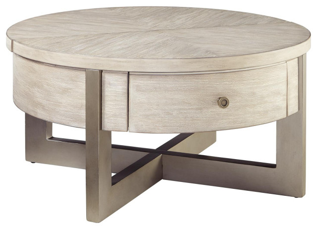Urlander Whitewash Round Lift Top Cocktail Table Farmhouse