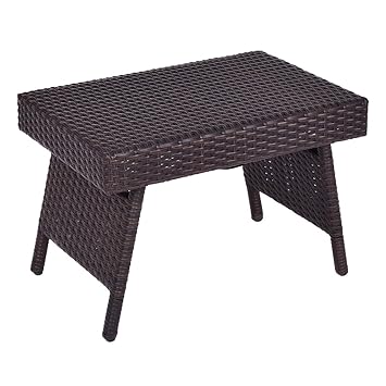 Portable Folding Pe Rattan Side Coffee Table Amazon Co Uk Garden