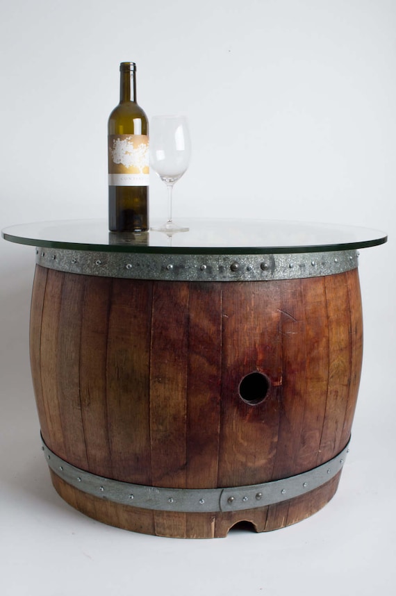Natural Wine Barrel Coffee Table With Cork And Glass Top Etsy