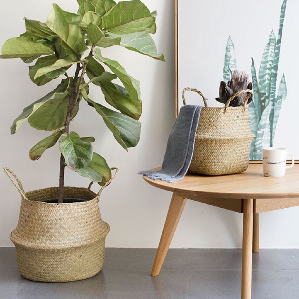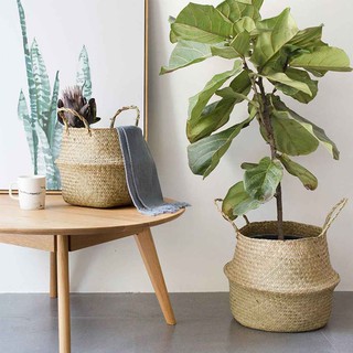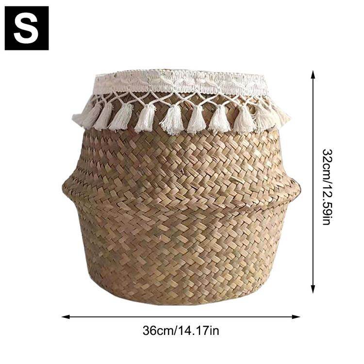 2pcs Seagrass Flower Belly Basket Storage Pot Foldable Shopee